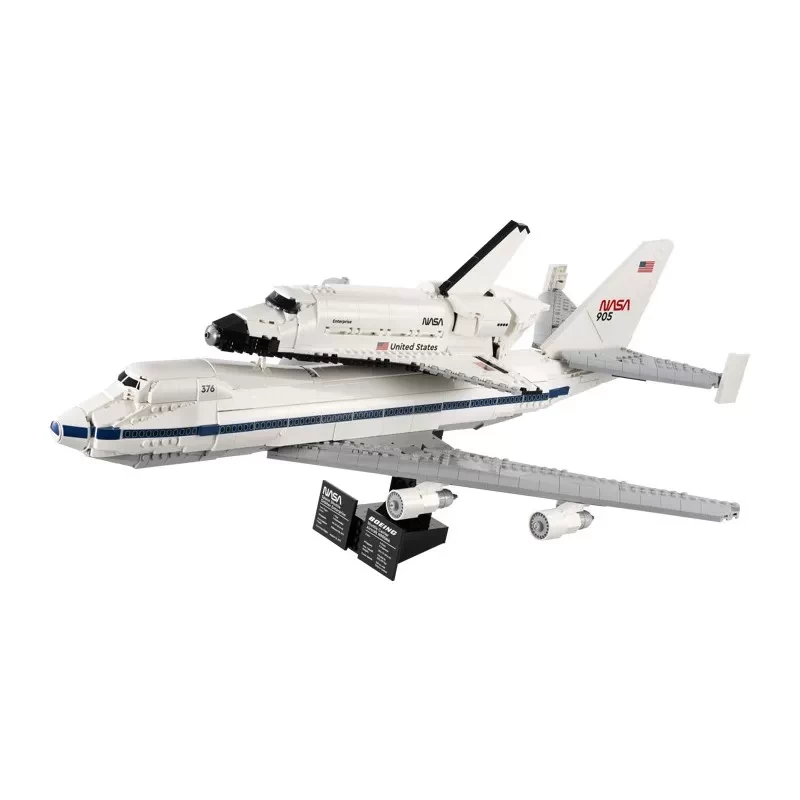 Соберите две точные модели: самолет Boeing 747 с элегантным фюзеляжем и космический челнок NASA Enterprise, которые в реальности работали вместе для испытаний программы Space Shuttle. -