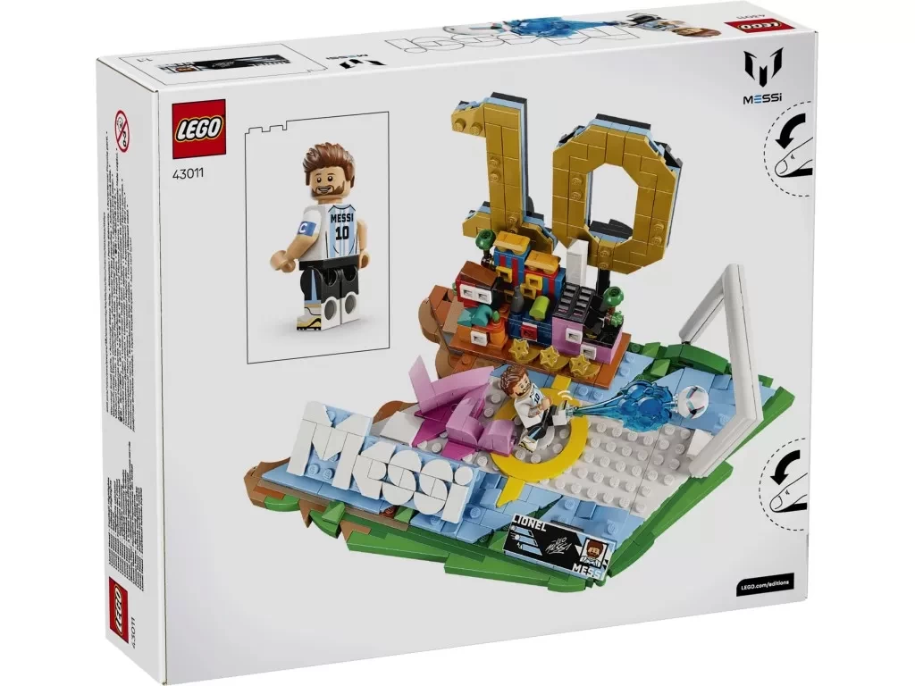 Набор LEGO Editions Лионель Месси — футбольные моменты (43011) позволит мальчикам, девочкам и взрослым болельщикам создать уникальную коллекционную модель, прославляющую одного из величайших игроков в истории футбола. В комплекте 500 деталей для сборки стилизованной подставки с минифигуркой Лионеля Месси.